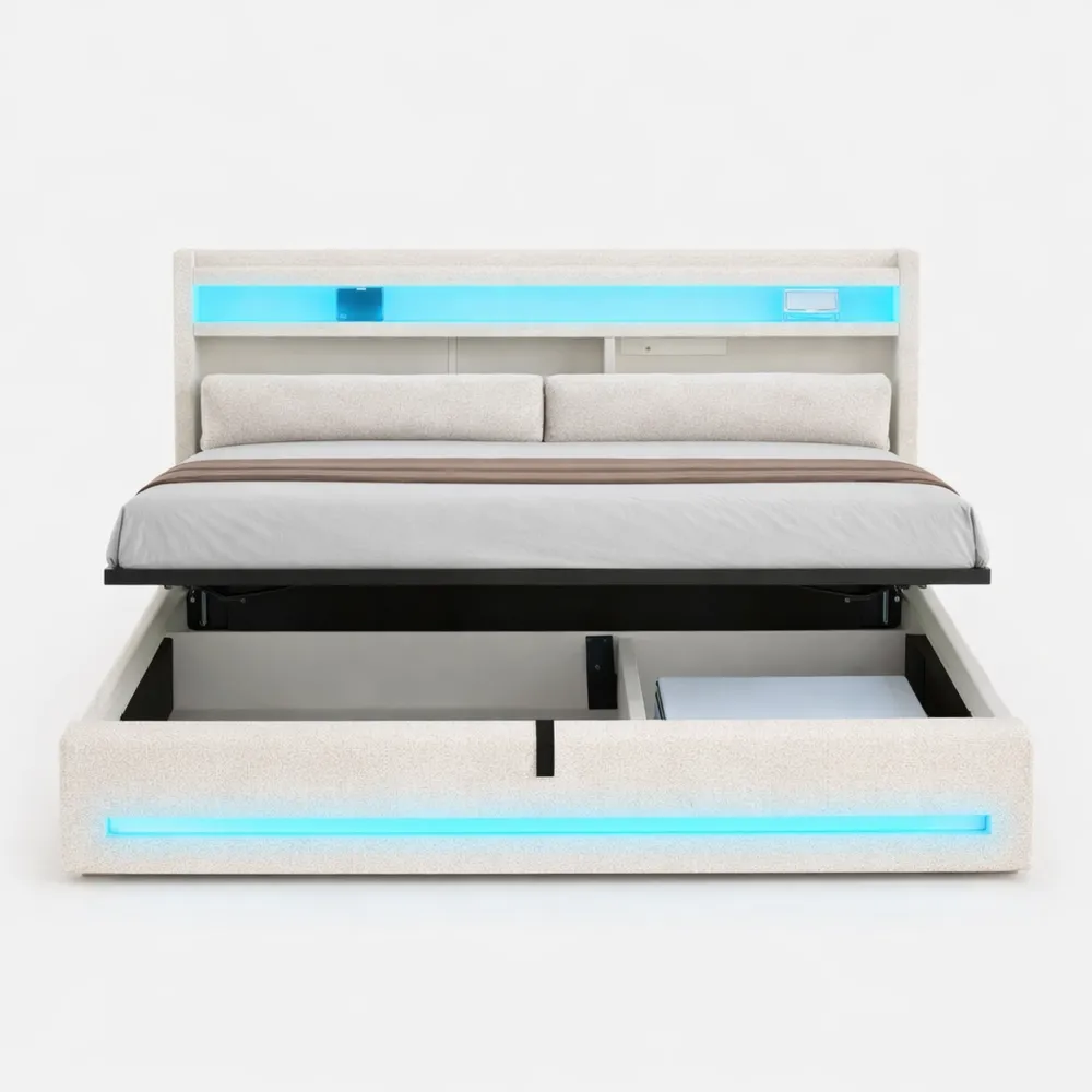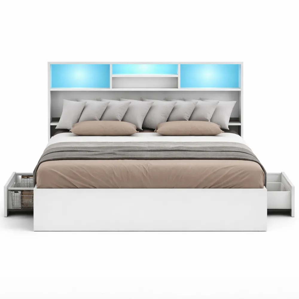 Lit Double 140x200cm avec Rangement et Éclairage LED