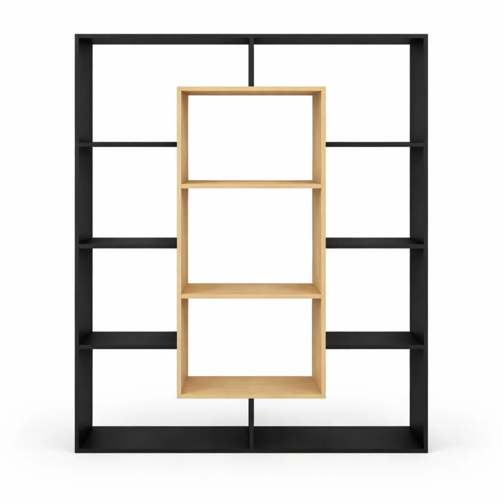 Bibliothèque aux lignes épurées qui s’intègre avec divers styles de décoration intérieure. Pratique pour ranger et organiser vos livres, vases, décorations ou objets de collection. Conçue pour s'adapter même aux espaces restreints grâce à sa fonction compacte. Offre une capacité de stockage optimale avec ses 11 compartiments de différentes tailles. Dimensions totales : Longueur 104 x largeur 30 x Hauteur 143 cm.