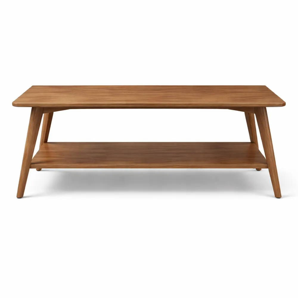 Découvrez une table basse au design épuré, avec des pieds fuselés et des courbes douces. Elle dispose de deux niveaux offrant un espace pour placer des objets et organiser vos livres et magazines.
